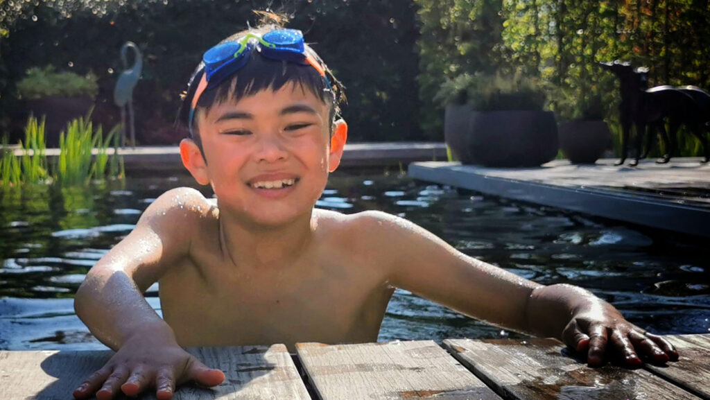 Wij konden ons niet inhouden en trokken zaterdagmiddag al richting Gent om zijn verjaardag te vieren. Alhoewel Oma & Opa net een eerste maal gevaccineerd zijn hebben we ons mooi aan de corona-regels gehouden, mede dankzij het mooie weer konden we genieten van de mooie tuin en vooral de kinderen alhoewel het water nog héél koud was van de zwemvijver!