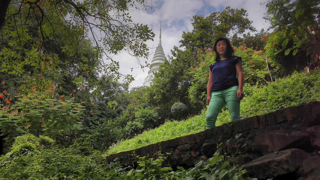 Na de rondleiding van bijna 2 uur rijden we verder naar een Boeddhistische tempel Wat Phnom (Phnom betekent heuvel in het Khmer) en ligt op een door mensen gemaakte heuvel van 27 meter hoog en werd in 1373 gebouwd. Voor de bevolking is dit een zeer heilige plek en dat merk je op de straat rondom de tempel zijn er veel waarzeggers, gebedsgenezers, bedelaars en heilige mannen.