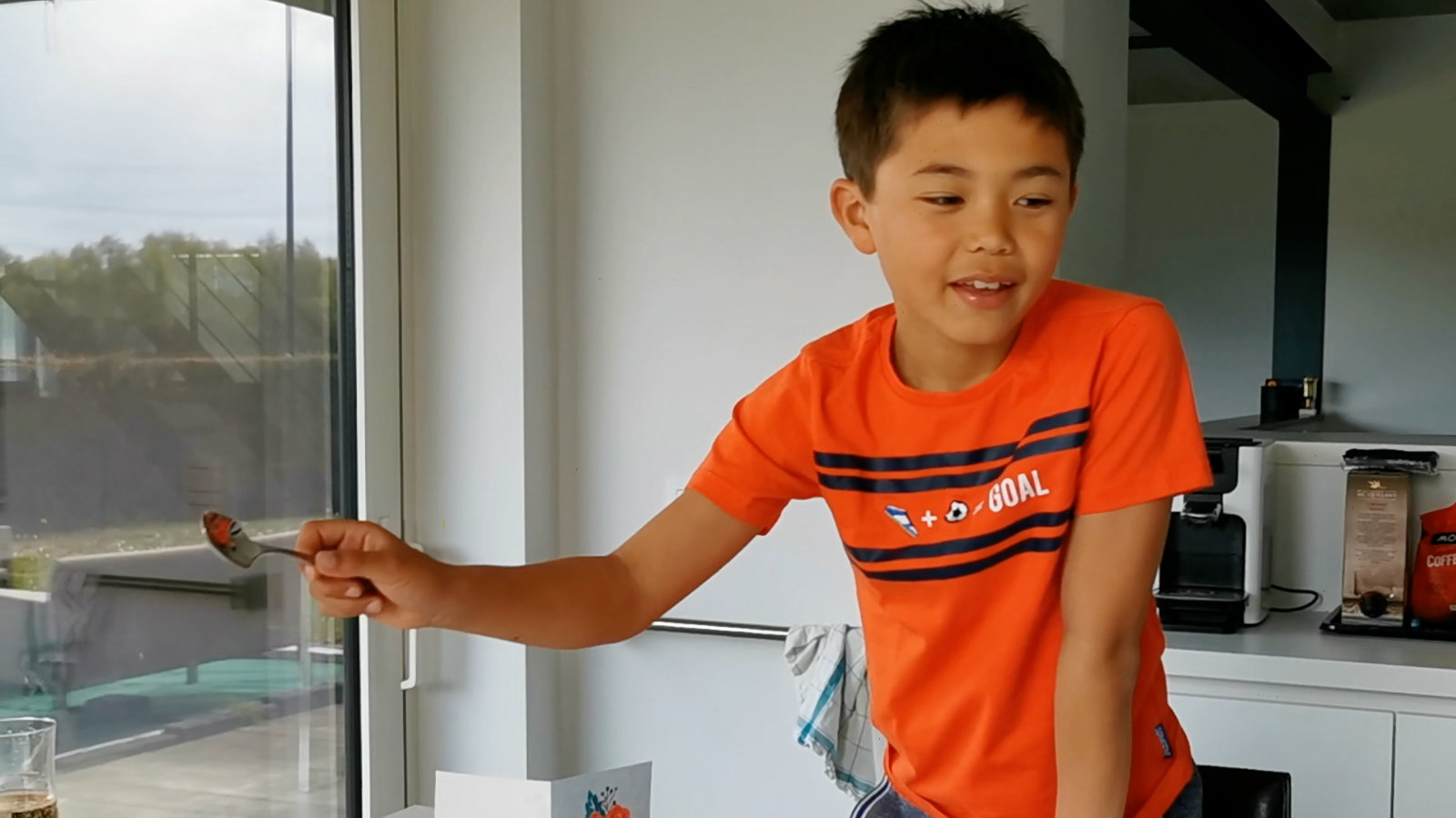 We hadden net ons buikje vol met “gezonde” voeding en peter Filip belde aan om onze Kobe te feliciteren…en ja deze keer had hij weer een leuk cadeautje mee voor onze verwende tiener (nu mag ik dat zeggen :-)) . Een voetbaltenue van de Rode Duivels….Kobe heeft er de volgende dagen mee geslapen, zo blij dat hij was !!! De volgende dag zij hij zelf “als ik eerlijk mag zijn vind ik het cadeautje van peter Filip leuker als dat van jullie :-)).