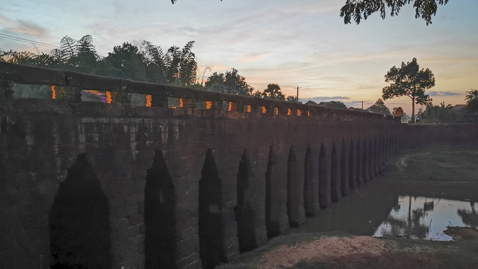 We rijden terug naar de hoofdweg om onze tocht naar Siem Reap te vervolgen intussen begint de duisternis vrij snel te vallen omstreeks 17h30 komen we aan de Preah Toes Bridge , dit is de oudste brug (gebouwd in de 12de eeuw) van Cambodja en de oversteek is nogal vrij hobbelig.