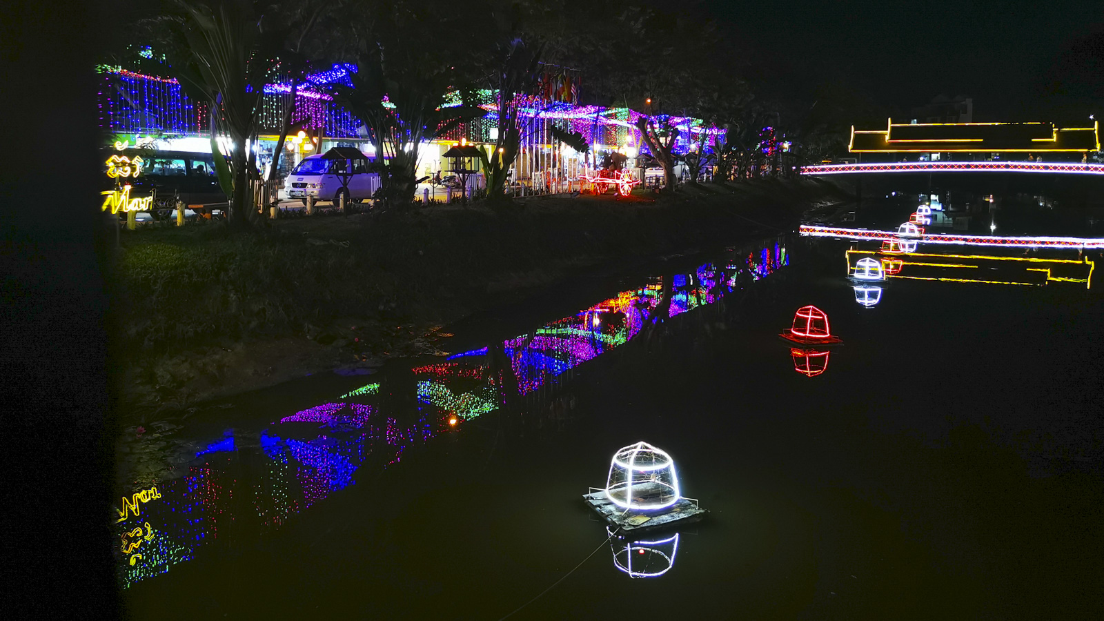 Het is een levendig stadje waar de Siem Reap rivier dwars doorheen loopt, alle brugjes over de rivier zijn mooi verlicht. Tegen middernacht gaan we terug naar het hotel want morgen gaan we Ankor Wat bezoeken.
