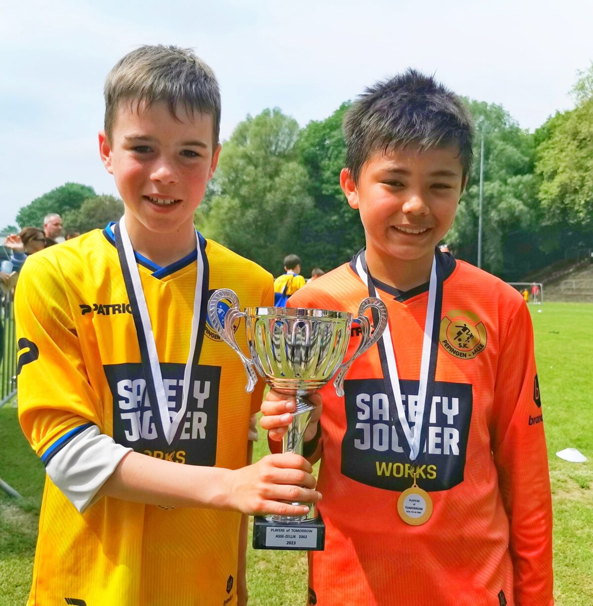 Vandaag speelt Kobe zijn laatste wedstrijden voor SKPH op het tornooi van Asse-Zellik. Ze wonnen vrij makkelijk (provinciaal tornooi) al hun wedstrijden en eindigden zoals ze het seizoen begonnen waren met een tornooizege. De laatste 5 minuten van zijn allerlaatste wedstrijd dit seizoen mocht Kobe van trainer Björn in de spits staan en jawel hij scoorde zelfs 2 maal. Het was vooral een leerlijk seizoen waar hij vooral op voetballend gebied veel stappen vooruit heeft gezet. Niet enkel Kobe zoekt andere oorden op, ook Mar (dochter van de trainer) Ladies RSCA(u14), Matthijs en Axel beiden naar FC Dender verlaten de club. Na de bekeruitreiking werd er nog uitvoerig van iedereen afscheid genomen.