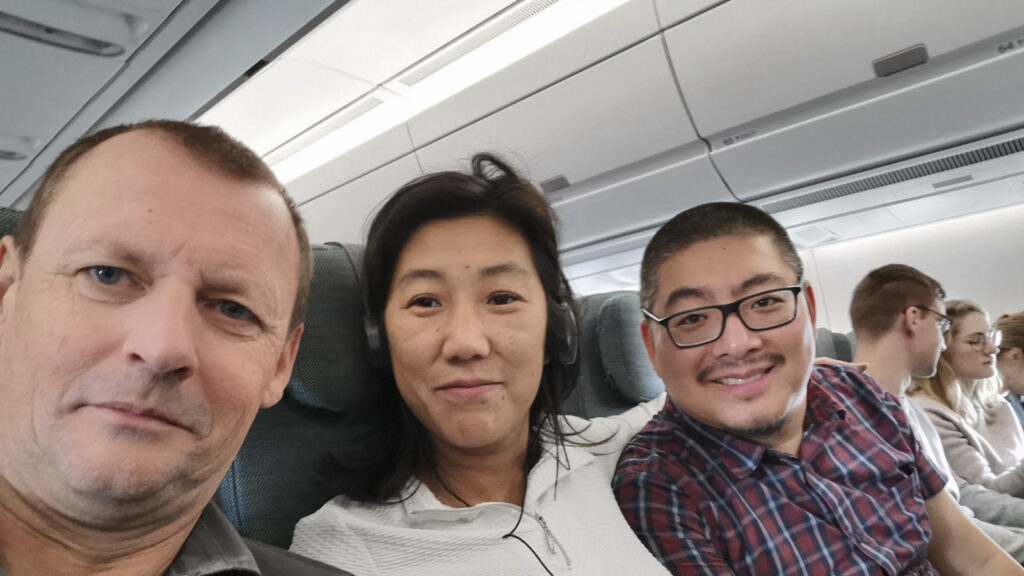 De vlucht naar Hongkong duurt 11 uur en 30 minuten. Rekening houdend met het tijdsverschil van 6 uur (later in Hongkong), landen we als alles goed verloopt om 6.30 uur in de ochtend.